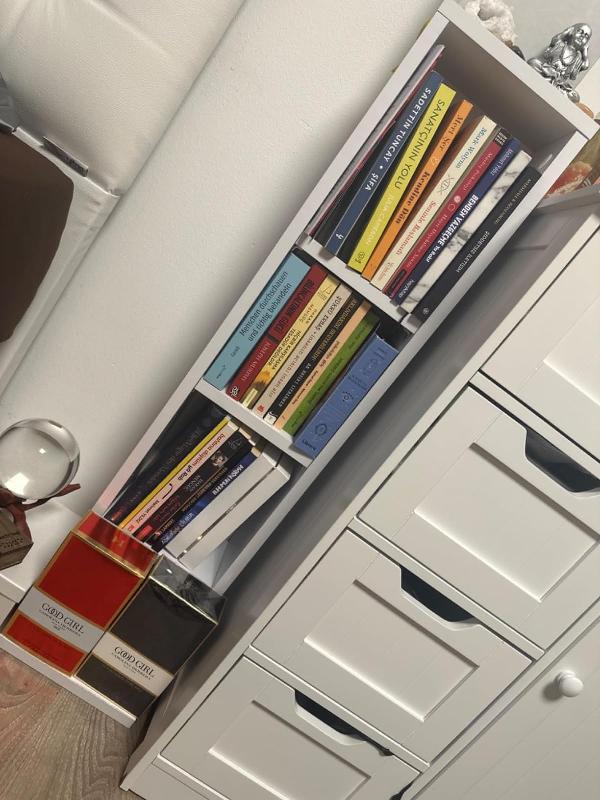 - MAßE: Der DVD-Schrank hat eine Breite von 21 cm, eine Höhe von 91,8 cm und eine Tiefe von 20 cm. Alle detaillierten Größen sind auf den Fotos angegeben.