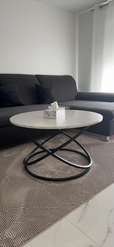 - MAßE: Der Wohnzimmertisch hat einen Durchmesser von 79,5 cm und eine Höhe von 46 cm. Alle detaillierten Größen sind auf den Fotos angegeben.