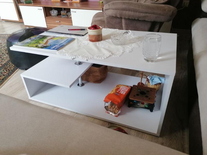 Der Tisch mit seinen verschiedenen Ebenen ist ein echter Hingucker und vielseitig zu nutzen, da man in den unteren Bereichen viel abstellen kann.