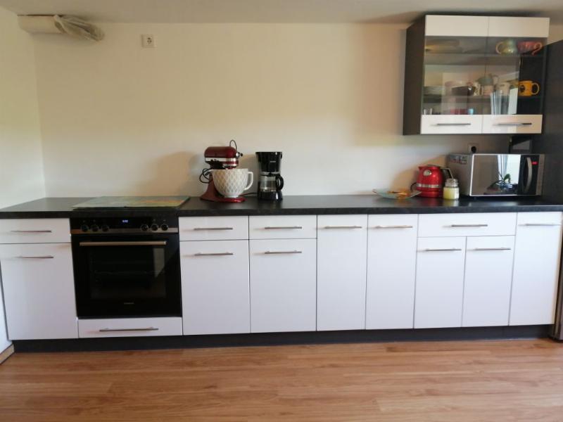 Leider ist noch nicht alles fertig, auf der Herdseite fehlen noch die Rückwand und die Dunstabzugshaube.