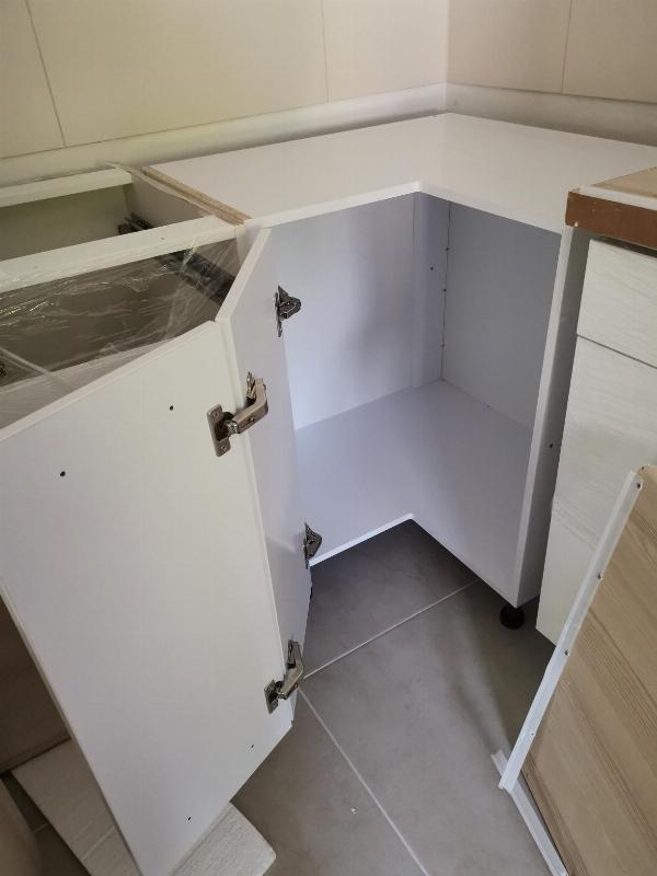 Der Schrank wurde schon nach zwei Tagen geliefert! War schnell aufgebaut. Die Qualität ist nicht so gut aber für diesen Preis ist es ok. Man sieht ja sowieso nur die Front wenn der Eckschrank eingebaut wird. Beim Einbau der Rückwand muss man vorsichtig sein, da die Nägel an einer seite Durchgehen. Habe den Regalboden nicht eingesetzt da ich noch eine Drehscheibe einsetzen möchte. Der Schrank muss mit etwas Abstand zur Wand aufgestellt werden, da er nicht 80 cm tief ist. Ansonsten bin ich sehr zufrieden.