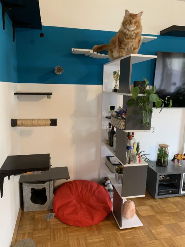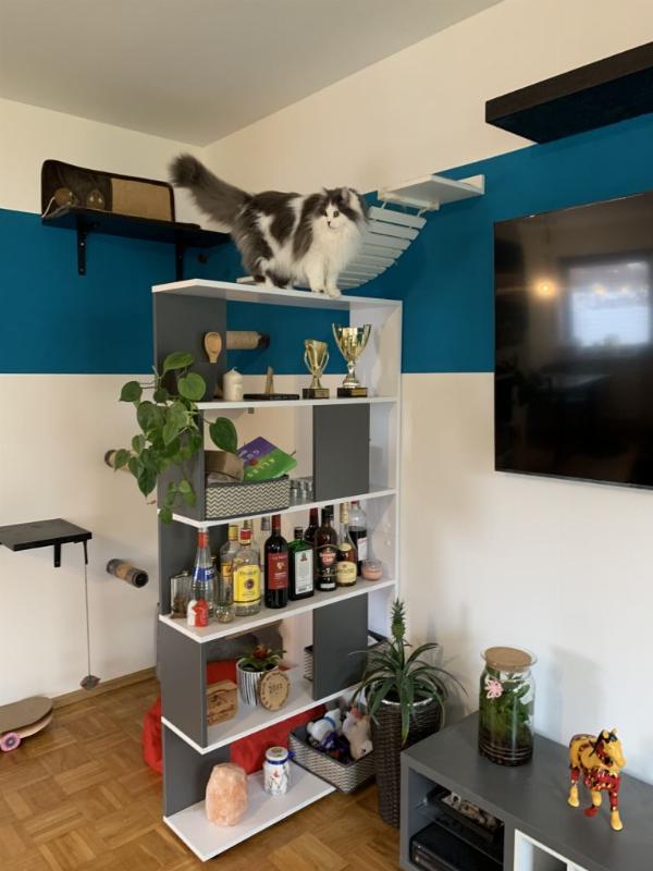 Der Raumteiler hat sich bei uns im wahrsten Sinne des Wortes gut "eingelebt" und ist ein unersetzliches Element in der Kletterwand für unsere beiden Katzen Ginger und Gandi geworden.