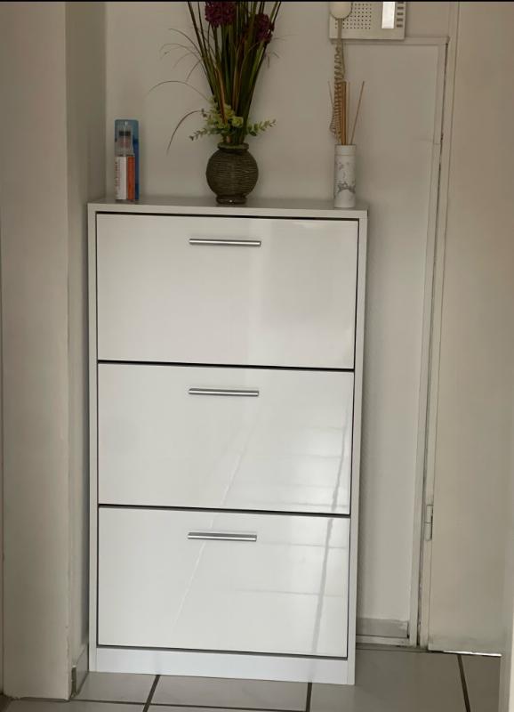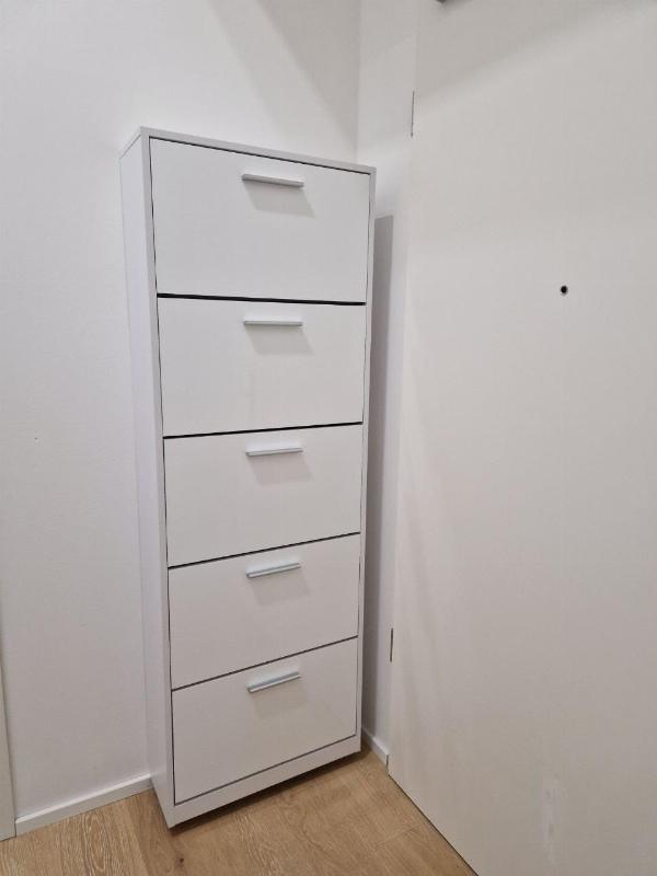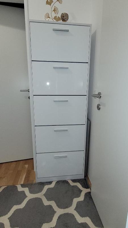 - MAßE: Der Schuhschrank hat eine Breite von 59 cm, eine Höhe von 169,5 cm und eine Tiefe von 22 cm. Alle detaillierten Größen sind auf den Fotos angegeben.