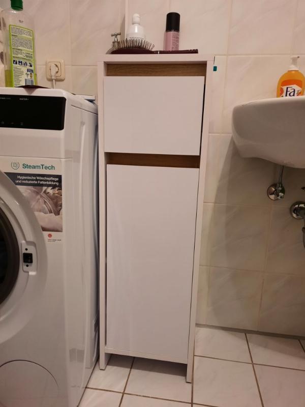 Ich bin mit meinem Badezimmerschrank sehr zufrieden. Das Wichtigste ist wohl, dass ich ihn selbst aufbauen konnte. Ich würde ihn so beschreiben-klein,aber fein. Ich bin inzwischen umgezogen und in meinem neuen, kleineren Badezimmer ist er genau der Richtige.