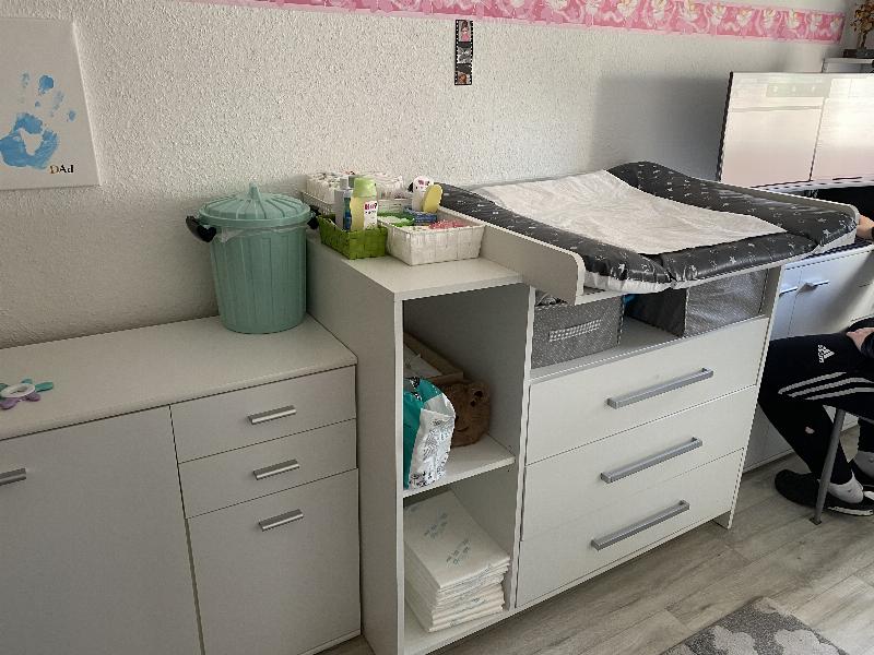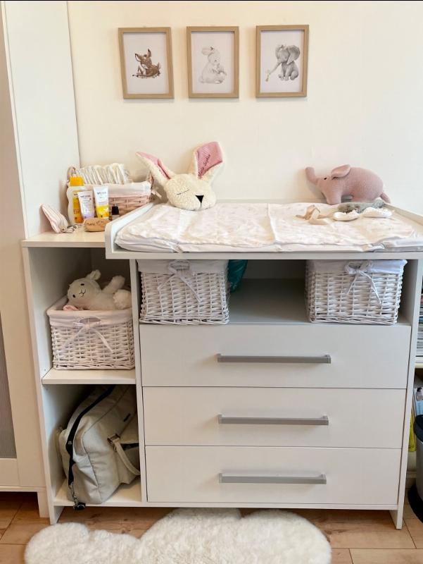 Wir finden die Wickelkommode sehr toll. Wir finden an der Wickelkommode schön die Schubfächer , weil man Griffbereit Die Kleidung fürs Kind hat. Toll finden wir das eine Abstellfläche neben dem Aufsatz ist. Den Wickelaufsatz kann später Abnehmen und als Kommode benutzen. Die Linkenseitenfächer finden wir sehr positiv für Feuchttücher, Wickelunterlage alles mögliche was man für ein Baby brauch. Unter den Wickelaufsatz die Fläche ist sehr praktisch wie bei uns der Fall zum benutzen zb von Boxen etc. Der Wickelaufsatz lässt sich flexibel einstellen.